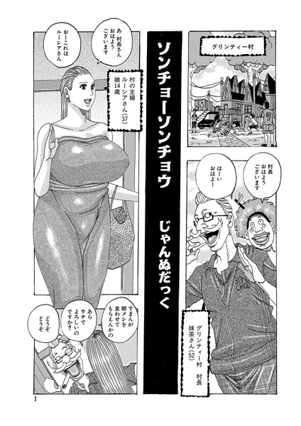 ご存じ、じゃんぬだっく先生の妄想ヤリマクリWORLD。今回は、グリンティー村の村長が朝から晩まで、熟女から若い女まで犯しまくる…。