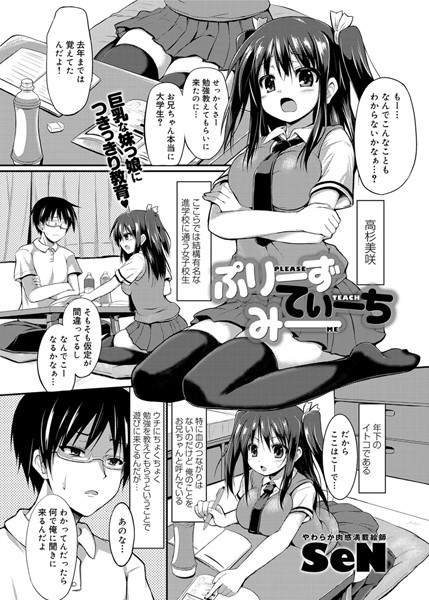 「お兄ちゃん、フェラチオを教えてくんない?」「ふぇ…フェ…え!?」自分のことを「お兄ちゃん」と慕ってくるイトコの受験生・高杉美咲。そんな彼女の勉強を見てあげたものの、自分よりもずっと頭の良い美咲相手に教えられることなんて残念ながらほとんどナシ。自分にわかる範囲と言ったら、エッチなご指導だけかも?大人の階段上る巨乳娘に、好きなだけエッチなことティーチングしてみるべし!!人気絵師SeNによる新作が早くも登場!