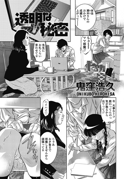 知美は家庭教師の瀬木と肉体関係があった。母親の目を盗み、貪り合うお互いの肉体。漏れ出る声を聞いていぶかる母親に、そしらぬふうを装って返事をしなければならない。今週は父親が帰ってこない、ならば今日は泊まり込みで可愛がってやると言ってくれる瀬木。しかし、ママがそれを許すわけが……と思いきや、ママは何もかも知っていた。ママもずっと前から瀬木と関係があったのだ。知美とやらせないと別れるという瀬木の言葉に、ママは知美を差し出していたのだった。